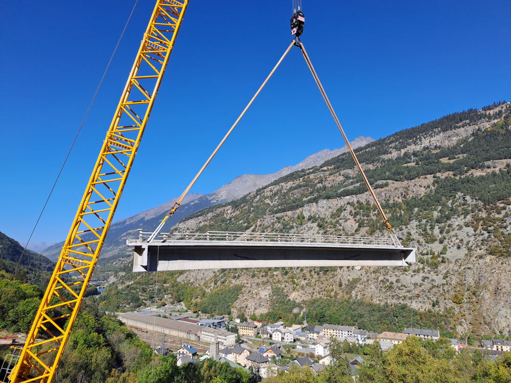 Bridge lift of the old Viaduct of Charmaix with LR11350 on the steep alpine